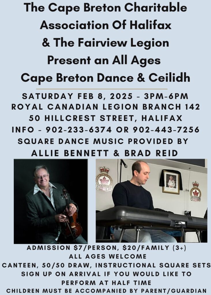 The next All Ages Cape Breton Dance & Ceilidh will take place Saturday February 8th, from 3-6pm, at the Fairview Legion (50 Hillcrest St at corner of Main Ave).